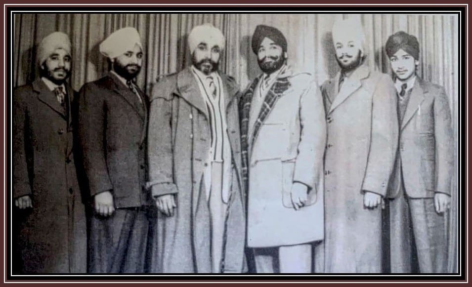 From Left to Right: S. Sardar Singh Sathi, S. Darshan Singh Gola, S. Ghoulu Singh Roudh, S. Mangal Singh Roudh Khanda, Name: Unknown, Name:Unknown. We hope to upload more of these pictures of our forefathers. If you can name the above or have further information, then please send us a message or comment.